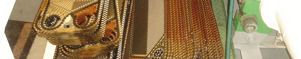 „Seeing is believing“ that’s why the fresh water generator was disassembled in the dry dock in Hongkong as planned before. The purpose was solely to see the development on the inside. The picture shows that all plates are clean, just as assumed from the monitoring data. The only dirt visible is a brown film which could be removed easily with a cloth.