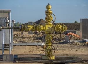 Once the well is drilled, it is closed with a valve and ready for production of oil and gas.